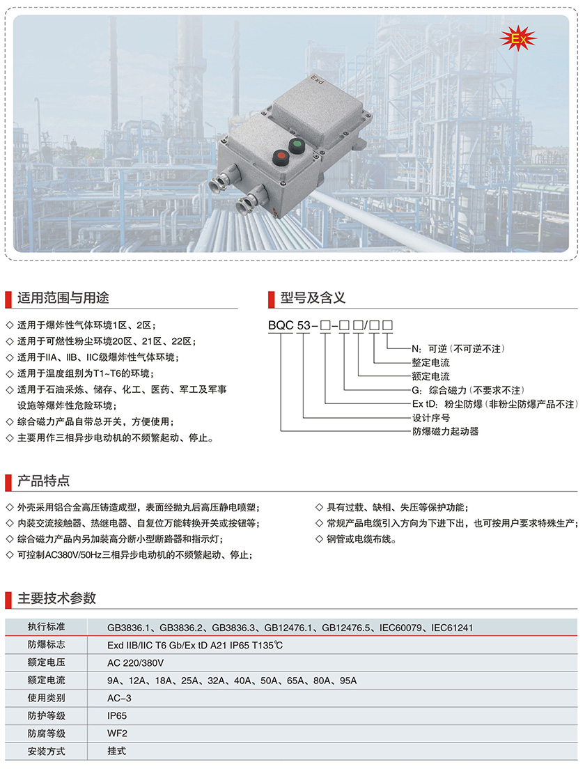 BQC53系列防爆磁力起动器(IIB、IIC、Ex tD)